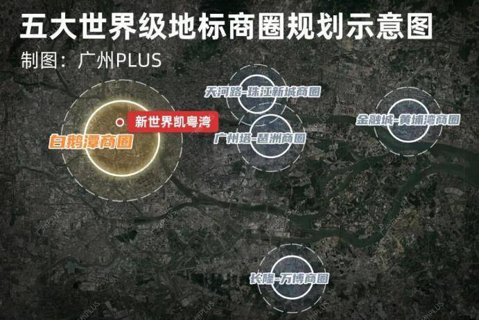 广州5个世界级地标商圈,包括白鹅潭商圈、天河路—珠江新城商圈、金融城——黄埔湾商圈、长隆—万博商圈、广州塔—琶洲商圈。
