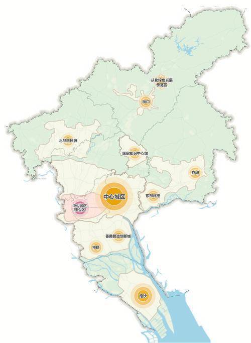 但广州要东进,要做大湾区的广州,就必须再造一城,这一个增长极点,落在广州东部枢纽头上。在最新发布的《广州市城市更新专项规划(2021-2035年)》,东部枢纽作为单独个体被首次重点标出,紧挨着广州中心城区,是一个由广东省直接统筹的重点区域,由黄埔、增城共同助力发展。