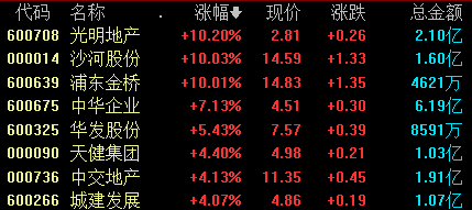 1月29日,广州新政后首个交易日,房地产开发板块表现活跃。光明地产、沙河股份、浦东金桥、中华企业、珠江股份涨停,深振业A、中交地产、华发股份等跟涨。