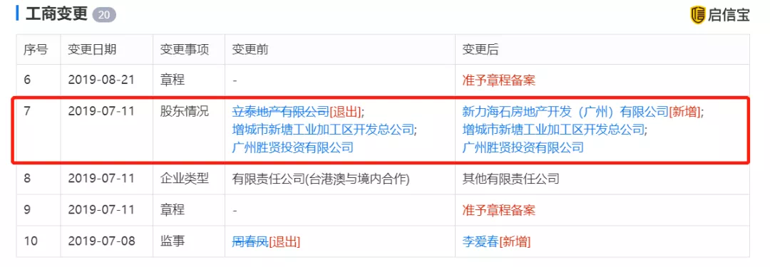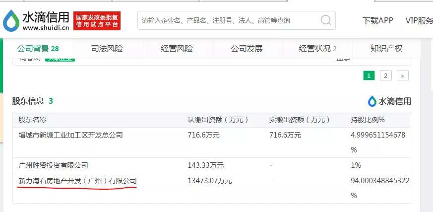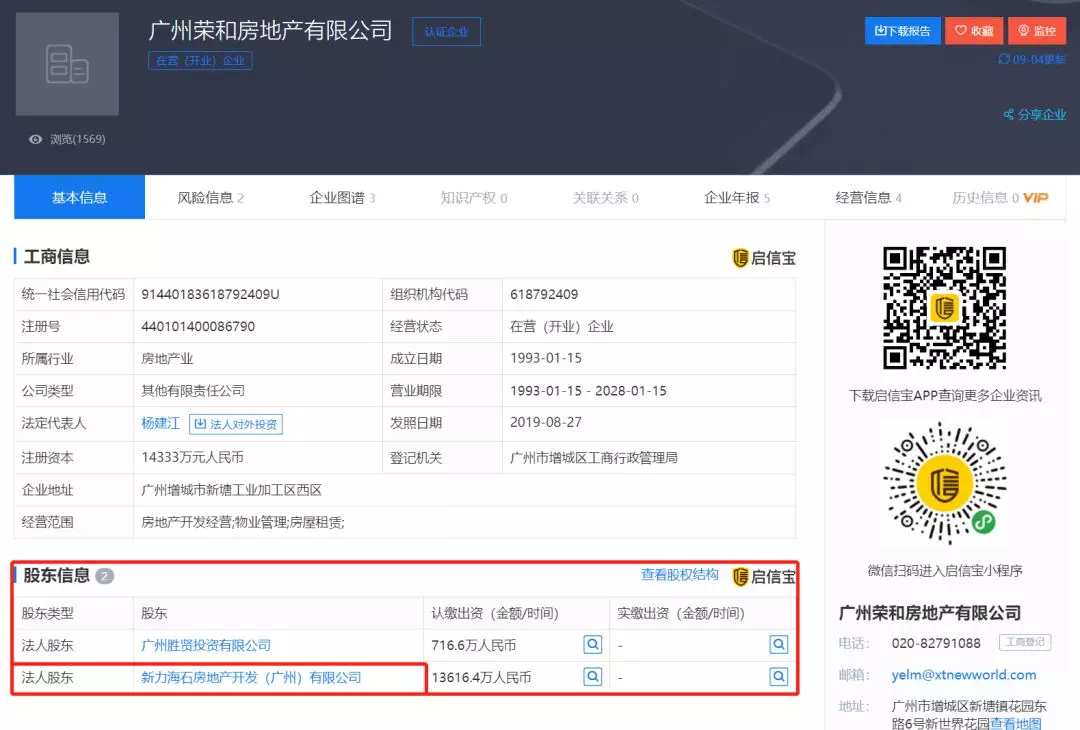 2019年7月,新力海石房地产开发(广州)有限公司正式加入,成为广州荣和房地产有限公司的控股股东,持股比例为94%。