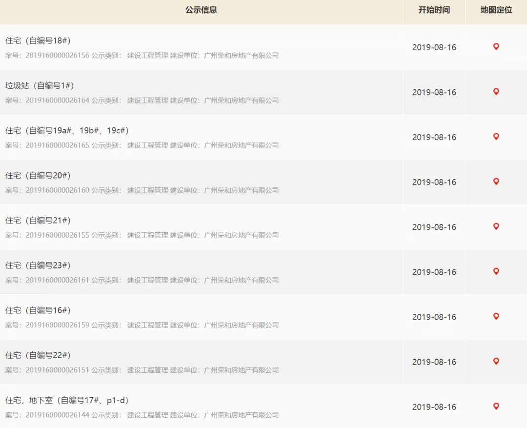 2019年8月,广州市规划和自然资源局对关于该地块的9张规划许可进行公示。