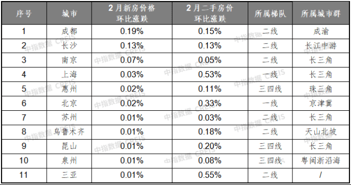 整体而言,受楼市政策持续优化、疫情及春节期间累积需求集中释放等因素影响,部分核心一、二线城市房地产市场情绪有所修复,房价出现了较为积极的信号。