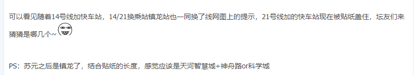 从上图可以看出,新增站点位于大观南路——苏元之间,刚好是“天河智慧城、神舟路、科学城”三站,而字符长度也恰好对应。人多车少增设快车站是否有必要?