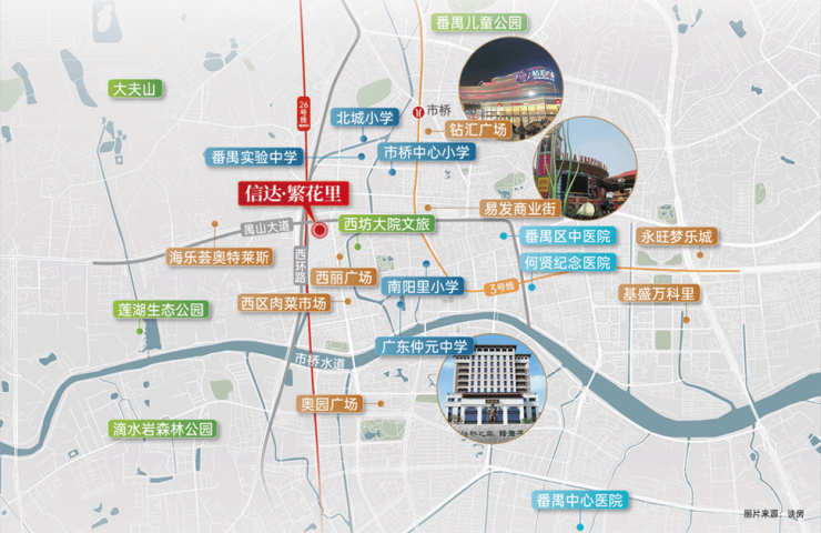 在区位价值方面,信达·繁花里地处番禺市桥核芯区域。项目邻近禺山大道、西环路等主干道及地铁3号线市桥站,便捷接驳万博CBD、珠江新城。