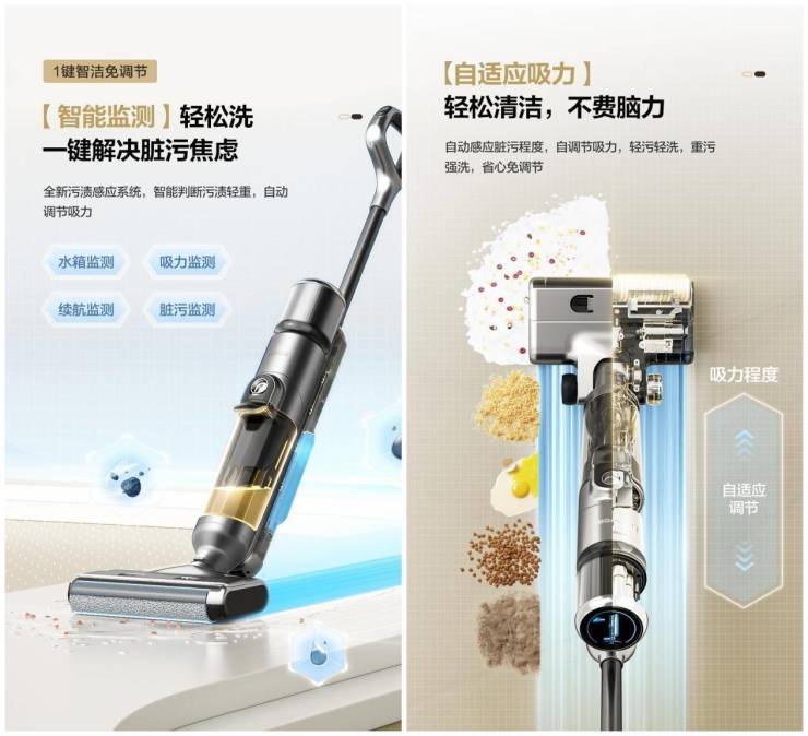 对于厨房地面等污渍较为严重的区域,苏泊尔洗地机M02H还配备了内置的污渍自动感应系统。启动“智能模式”,就能智能判断污渍轻重,自动调节吸力,做到轻污轻洗、重污重洗。这样,用户无需过多操心,省时省力又省心。