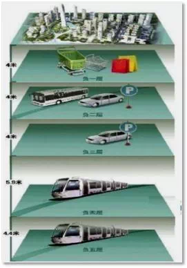 约220万㎡地下空间,5层智能交通体系全国较大的地下城,珠江新城的3.6倍。