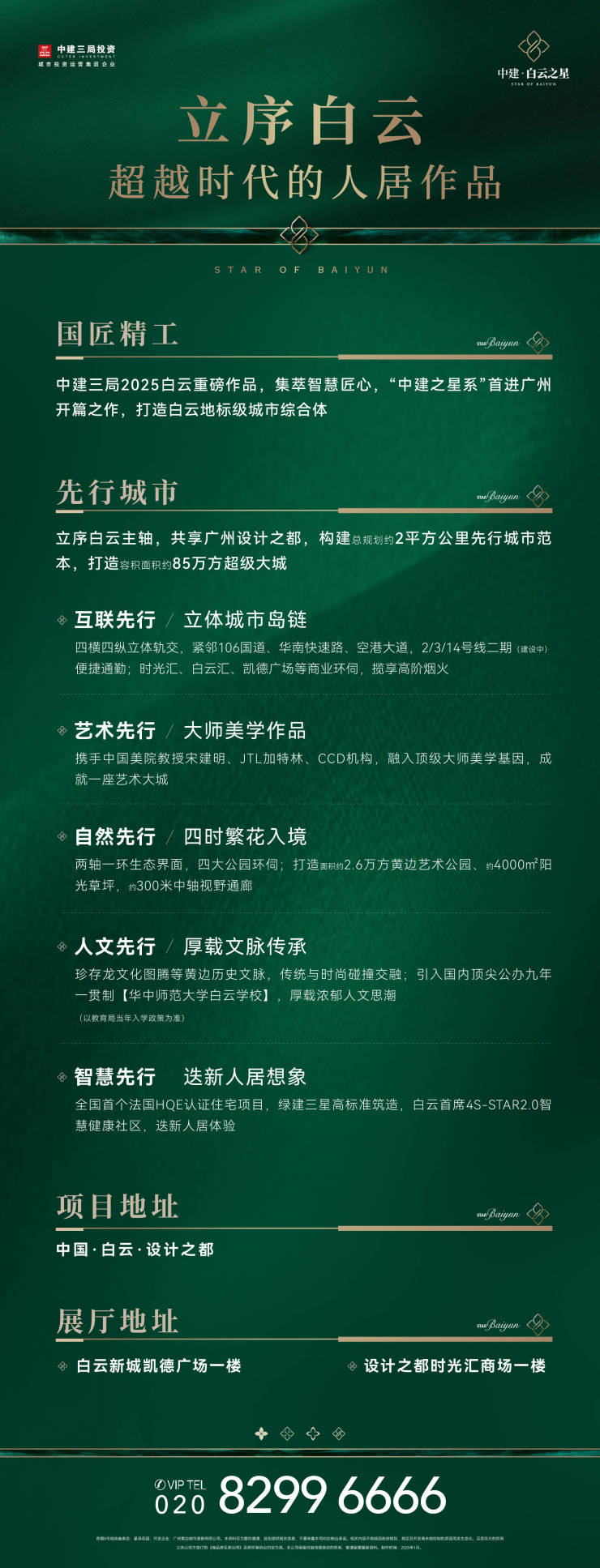 从建瓴全球奇迹到书写大国伟岸,从润养千年商都到迈向世界湾区,中建三局再次以国家战略“先行者”的身份,再次赋新白云人居革命。中建·白云之星深度融入总规划约2平方公里设计之都,打造先行城市范本,续写“中建之星”荣耀,成就白云主轴之上的璀璨明星!