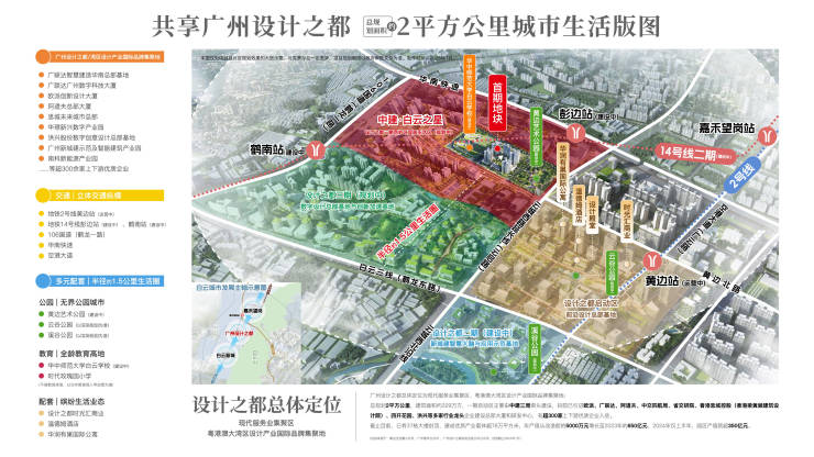 总规划面积约329万方的设计之都,以国际化产城综合体、粤港澳大湾区设计产业集聚地的超高定位,重点布局新兴科技产业、先进制造业。一期建成开园仅两年,37栋大楼拔地而起,140多家行业龙头企业于此建设总部大厦及研发中心,300多家优质上下游企业入驻——一个由村镇企业集群到国际化大都会的崭新城市界面已澎湃呈现,标榜着白云的新未来!(信息来源:中国日报网;采集时间:2025年1月)