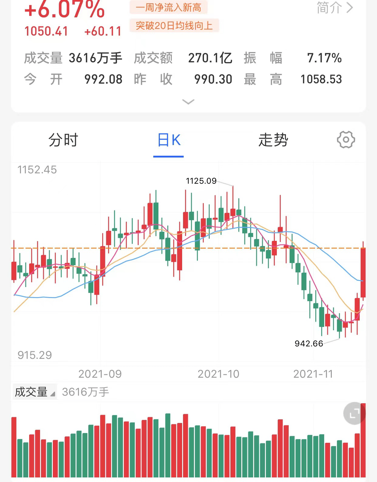受到多方面积极信号的提振,11月11日,房地产板块开盘后大幅走强,最终收涨6.07%。