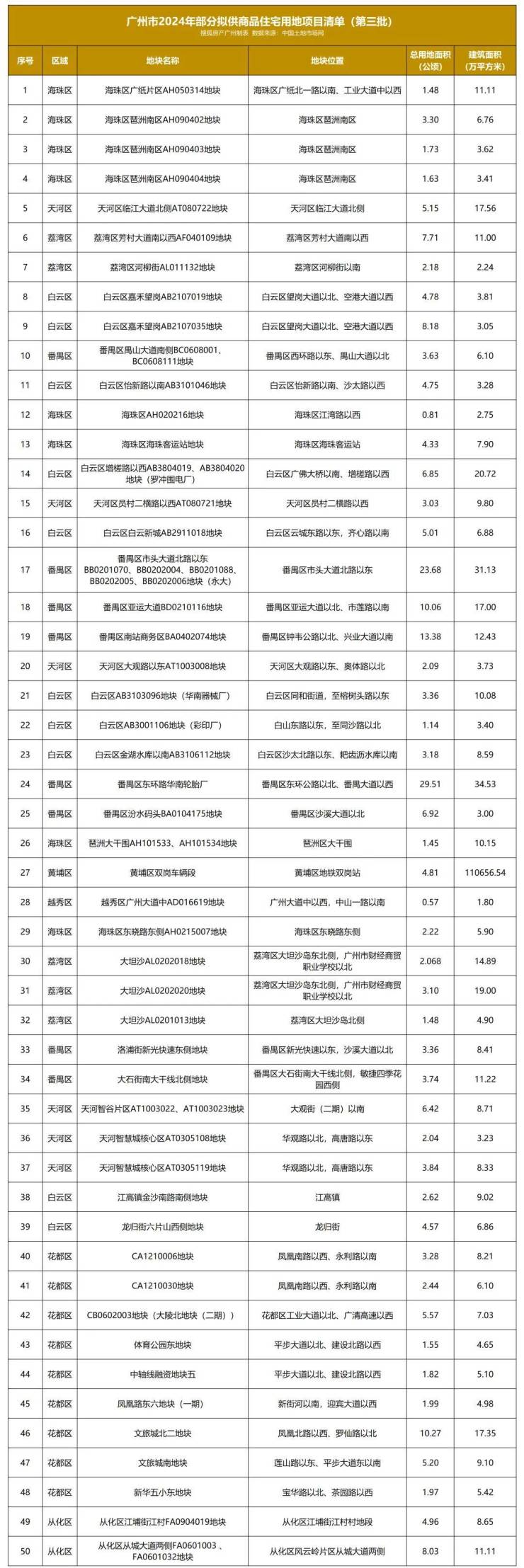 此外,更值得关注的是,日前,广州市规划和自然资源局发布《广州市2024年部分拟供商品住宅用地项目清单(第三批)》,拟于8月15日至11月15日期间出让。