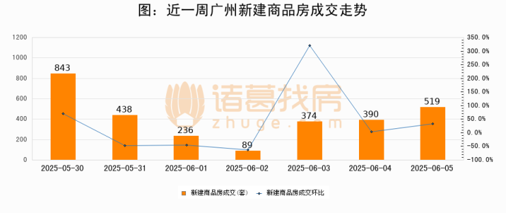 【广州成交日报】06月05日新房成交519套;涨价房源1套
