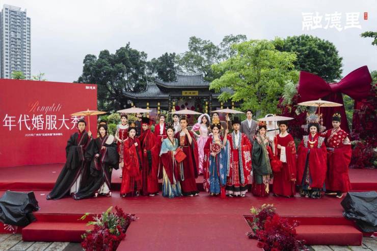 5月18日下午,万科·黄埔新城在国家3A级景区融德里举办第二届水上集体婚礼活动,现场12对青年男女在千余人的见证下喜结连理。除了饮交杯酒、现场颁发结婚证之外,活动还包含黄埔区民政局婚姻登记处驻南岗结婚登记中心揭牌仪式、东方婚服大赏、婚船巡游等环节以及甜蜜市集,共同成就了一场传统与潮流交织、科技与浪漫交融、集婚俗改革示范与“甜蜜经济”繁荣于一体的城市盛事。