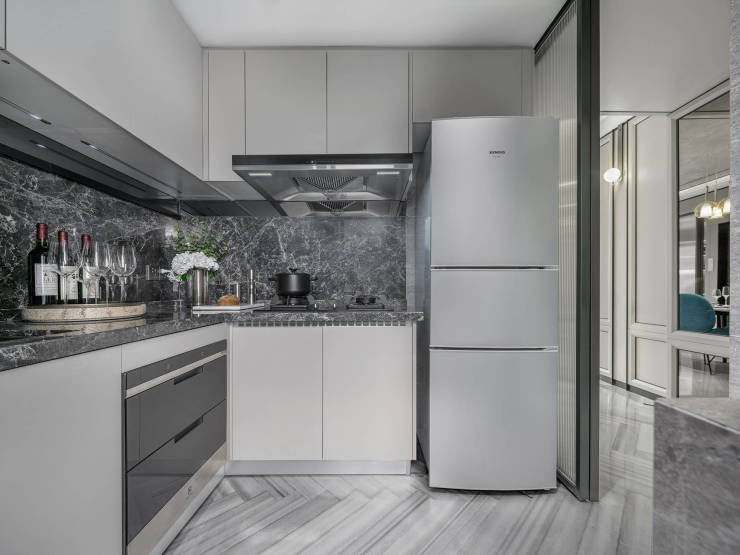 厨房一体化墙面,不像接缝瓷砖般会藏污纳垢,提升清洁效率。操作台的挡水条,是对生活小心翼翼的呵护。