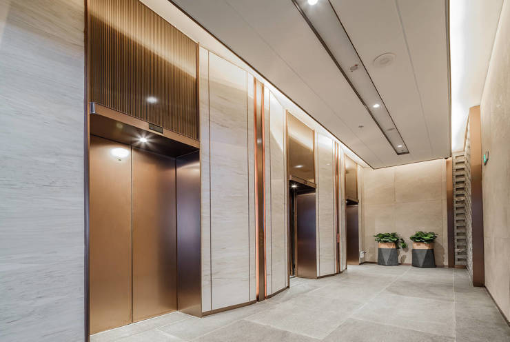 电梯更是采取五星级酒店标准,高速运行,就连灯光都是反复测试,形成多层次的感官视觉。即使几平米、几十秒的短暂乘坐,都是煞费苦心。