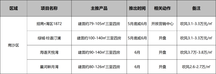 南沙区则将迎来4个新盘,分别集中在万顷沙、横沥岛和庆盛板块。