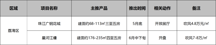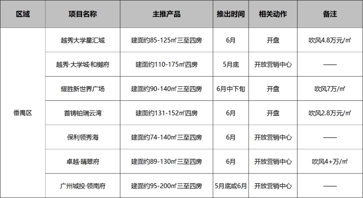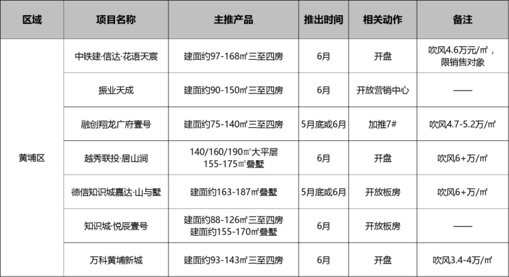 一直是楼市焦点的黄埔区6月份即将推出7个项目,包括开盘、加推新货、开放营销中心以及开放样板房。