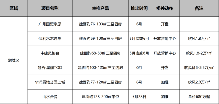 一直被称为“东大仓”的增城6月共推出6个项目,其中2个新盘开盘,2个项目开放营销中心、2个旧盘加推。