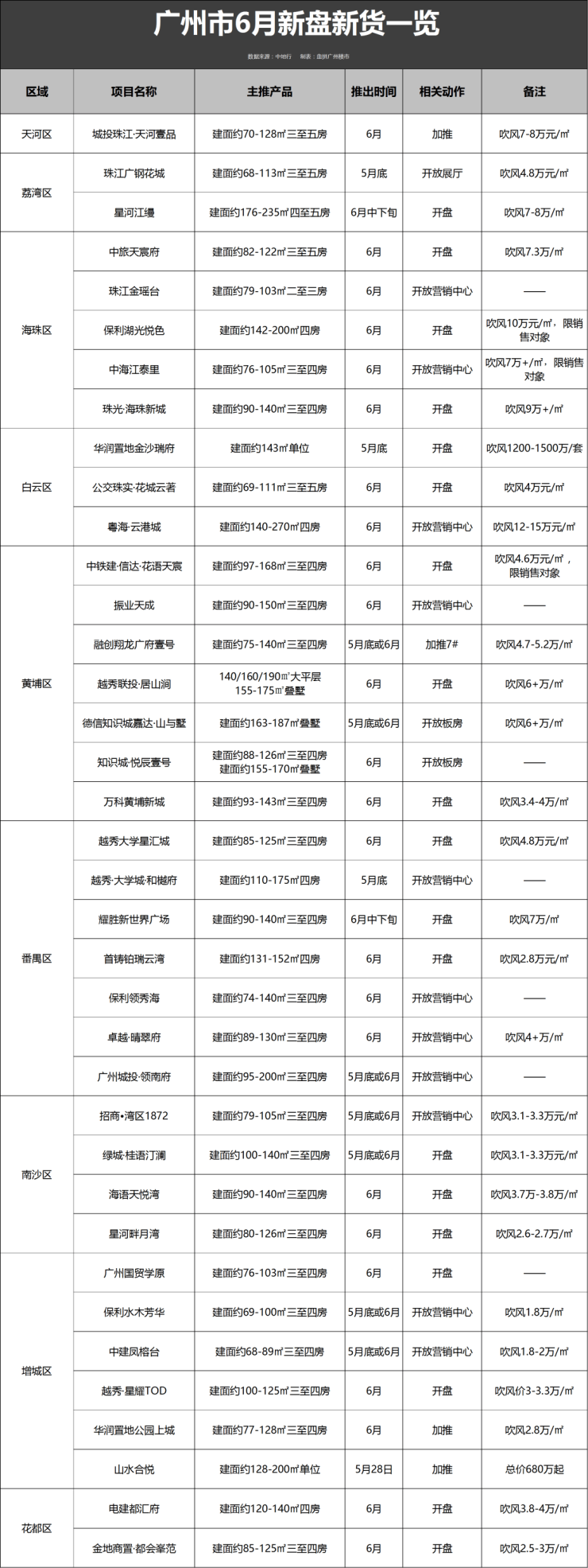 据搜狐焦点广州站和中地行不完全统计,6月广州约有37个新盘新货争夺入市。