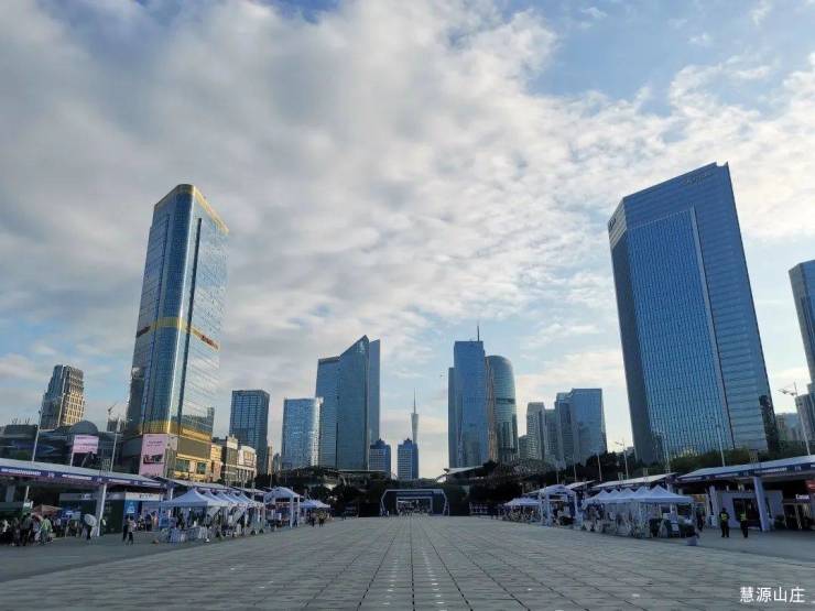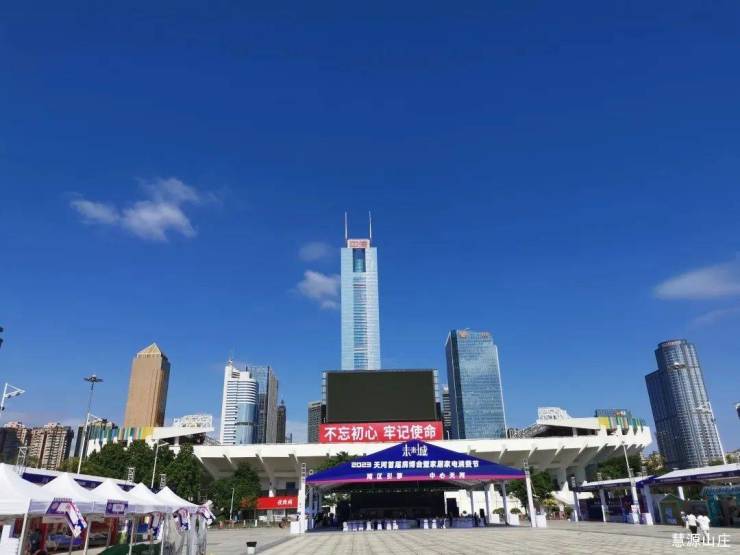 天河体育中心南广场——羊城中轴景色太美太震撼了!展会声势浩大,仅展位面积就逾2000㎡,云集了各大知名房地产企业和房产服务平台,让市民实现一站式逛展、一站式消费。海景集团此次精心筹划,将旗下打造的天河山水楼盘——慧源山庄亮相此次房博会。
