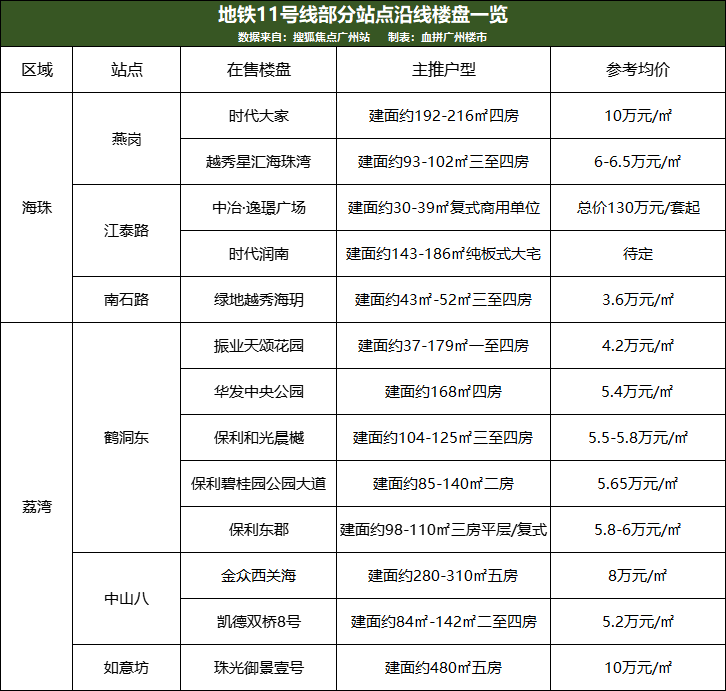 (11号线规划图,来自:广州地铁)附沿线楼盘一览——