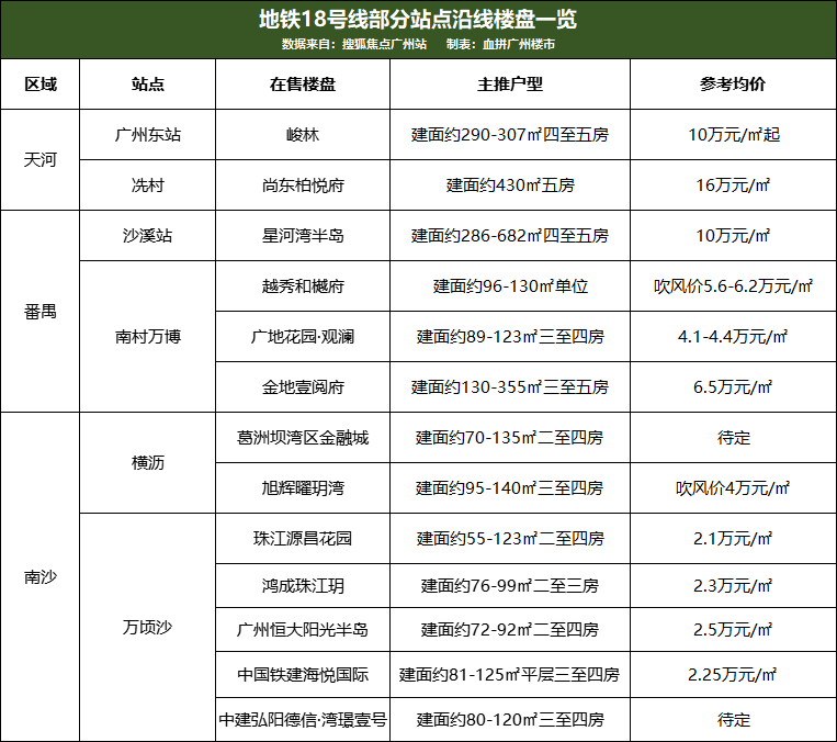 (18号线首通段规划图,来自:广州地铁)附沿线楼盘一览——