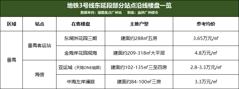 (3号线东延段规划图,来自:广州地铁)附沿线楼盘一览——