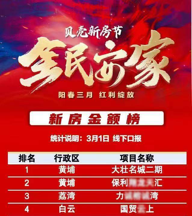其中,大壮名城尤其突出,新房节首战告捷,3月1日荣登广州新房金额榜TOP1。(数据来源:贝壳官方)