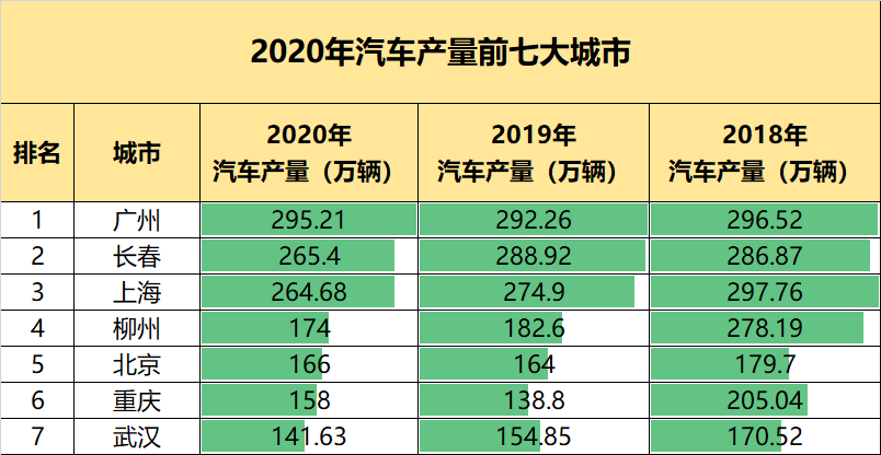 2020年,广州汽车产量达到295.21万辆,连续2年居全国排名前列。