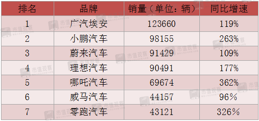 “蔚小理”之后,嘉兴哪吒、上海威马、杭州零跑的销量也在快速上升,它们都有可能冲进前三的可能。