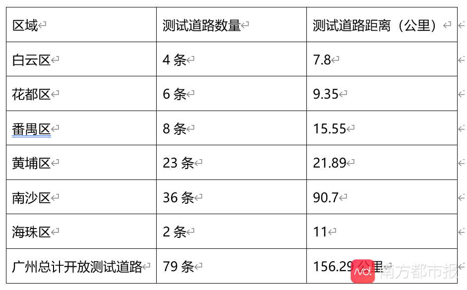 截止去年4月,广州11个区中6个区有智能网联汽车开放测试道路,共计79条,测试道路距离156.29公里。