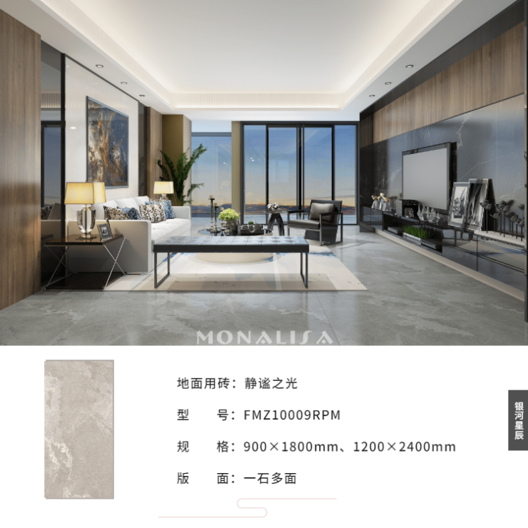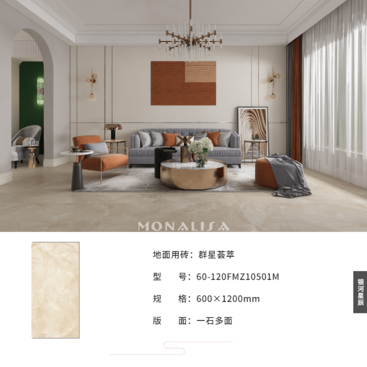 高级定制服装可细分为量身高级定制、个性化高级定制、奢侈高级服装定制三种,而蒙娜丽莎银河星辰系列参照意大利先进品牌产品全配套设计理念,产品设计、原料、试验、工艺、技术、应用实现全流程订制,以各类型空间适配规格、个性化设计的多釉面、高级空间定制款型的全配套系列,为高定家居提供优质材料。