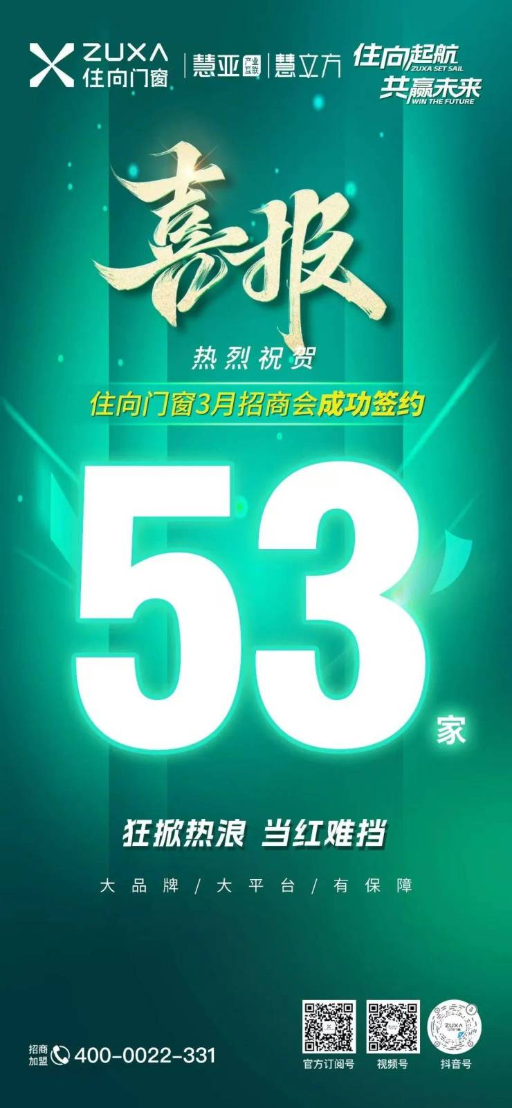 随着53家新合作伙伴的加入,住向门窗2025年全国网络覆盖率将提升至新高度。未来,品牌将持续聚焦产品创新、服务升级与渠道深耕,通过数字化工具与标准化运营体系,为合作伙伴提供从选址、培训到营销落地的全周期支持。住向门窗将以此次招商会为起点,与全国盟友携手共拓市场,书写门窗行业高质量发展新篇章!