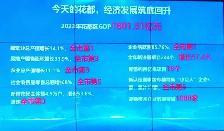 2月花都区召开全区高质量发展大会,会上花都区委书记对2023年花都的各项建设成就及成绩单进行了汇报: