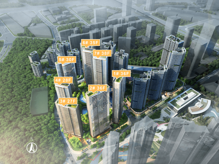 组团内部共规划有7栋住宅,层高27-38层不等,涵盖建面约200-270㎡大平层产品,总货量不足600套,卖完就没有了。