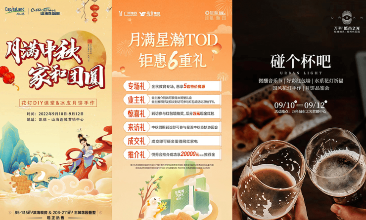 还有部分楼盘借势推出中秋主题活动,甚至是一波购房特惠,以吸客促成交。
