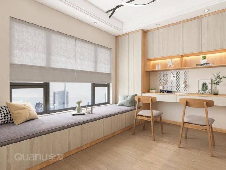 结合空间风格,将飘窗打造为储物柜,不仅能保证全屋风格的和谐性,还可以满足物品的收纳需求。再在飘窗上铺上软垫、放上抱枕,又可以得到一个采光优越且视野开阔的休闲区,闲暇之余,在这里晒晒太阳、煲剧、阅读、小憩,轻松又闲适。