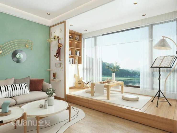 地台是近些年颇为流行的家居设计,它主要是抬高部分地面,利用高低差来划分空间功能。这样设计不仅可以提升空间的层次感,还可以根据需求将地台打造成休闲区、阅读区、亲子互动区……是一种功能性与美观性兼备的设计。