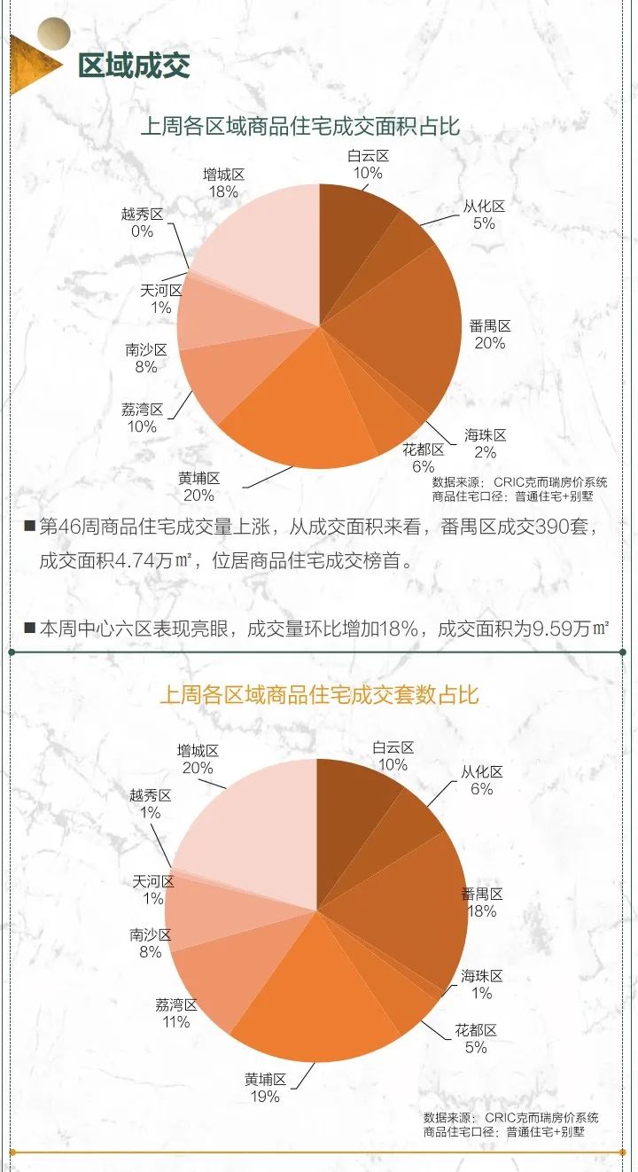从成交面积来看,番禺区成交390套,成交面积4.74万㎡,位居商品住宅成交榜首。