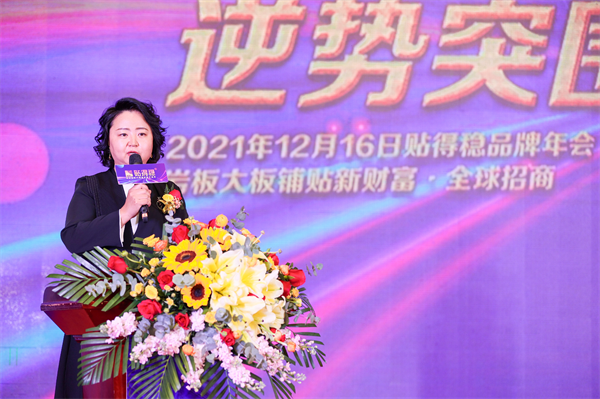 在讲到2022年及未来的趋势变化,她从多层面分享在当下看到的外部市场商机,通过信息的共享与经销商同频共振,达成共识。看到市场趋势,从内至外引发自我的升级来匹配市场的升级,让贴得稳人看到“必然”的好成绩。就在本次年会现场,和贴得稳确定合作关系的客户比预期还要多。