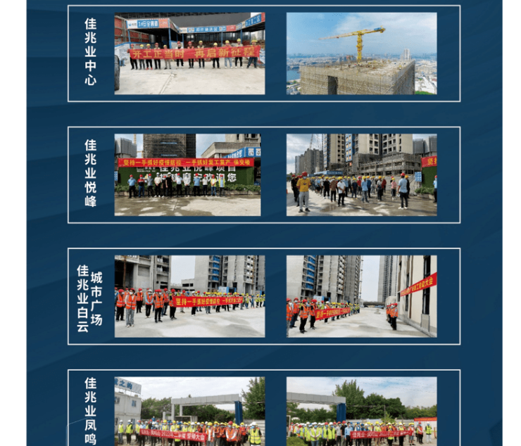 除此之外,佳兆业广州集团持续攻坚,科学有序组织重点项目复工复产,广州、佛山、粤西等地项目以“保民生、保交付、保品质”为目标引领,采取多种有效措施推进工程顺利、安全复工复产。