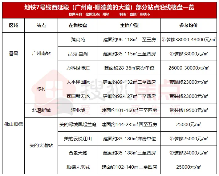 目前,沿线陈村、北滘新城、美的大道等站点周边一手楼盘相对集中。