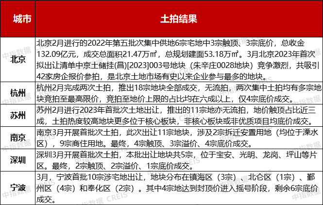 值得一提的是,3月23日,北京朱辛庄0028地块吸引42家房企及联合体报名,企业参拍意愿较强,不仅成交价格触顶,42家房企参与摇号大战,中签率仅2.38%,成为北京史上最“热”地块。