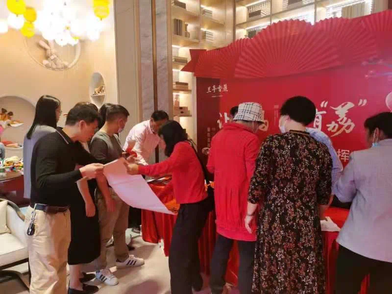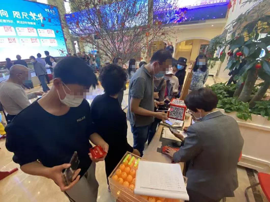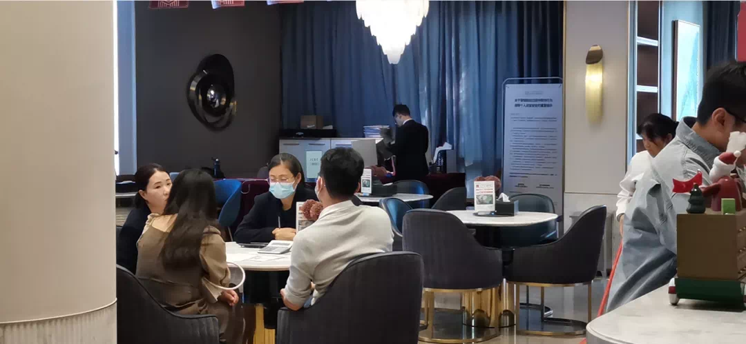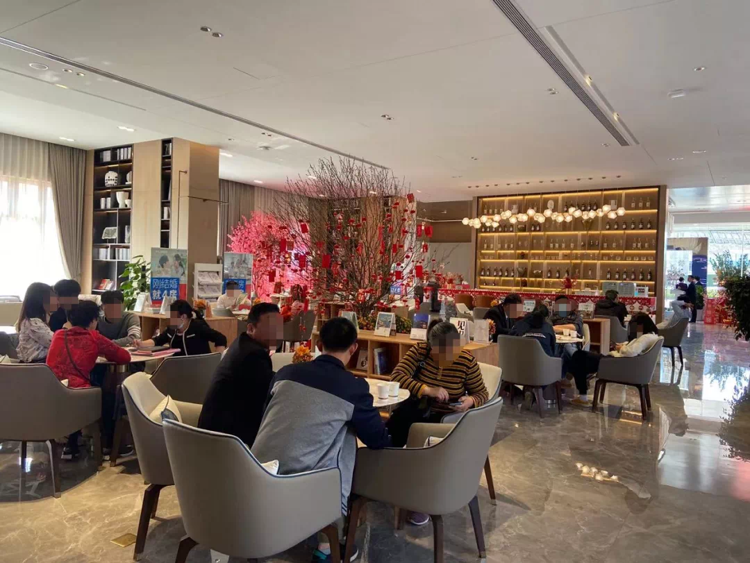 来到洽谈区,小狐君留意到现场共有8-10组买家正在咨询看房,还有1组准业主成交后敲金蛋领取大礼包,且接待处时常有新客户到访,颇为热闹。