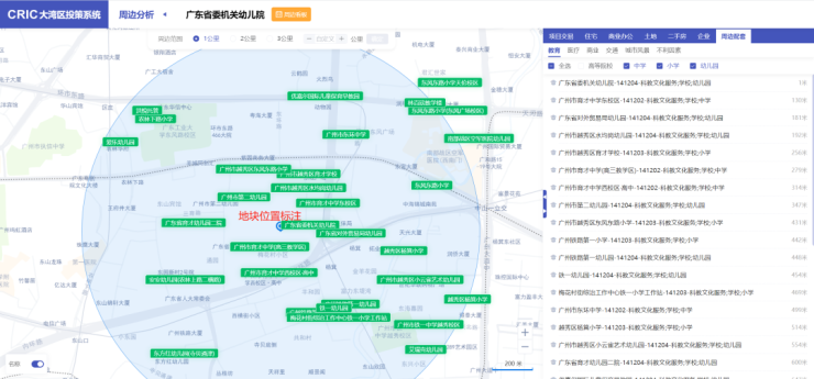 仅约1公里范围内就分布有广州市铁一中学越秀校区、广州市育才中学、越秀区东风东路小学、广州市第二幼儿园、广州市执信中学等优质学校。