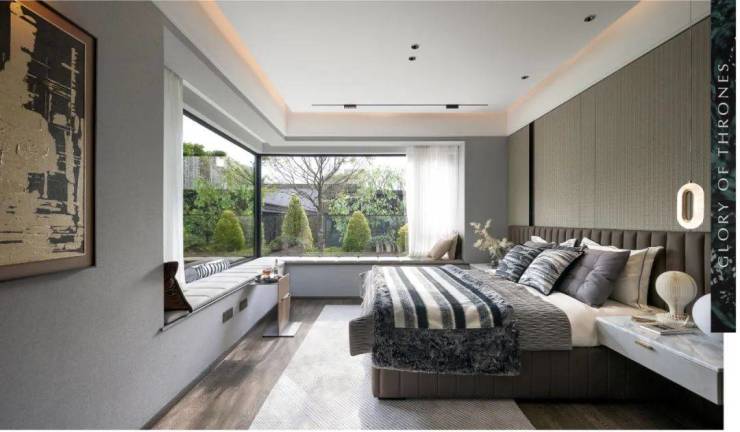 尤其是约28㎡的大主卧,270°观景大飘窗、独立衣帽间、全面屏转角落地窗超7米……鼎峯显赫私藏。