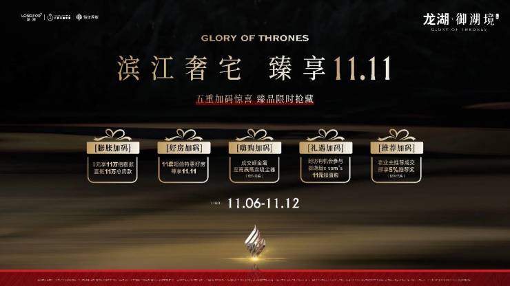 一年一度的“双十一”狂欢战鼓已经打响,全民消费热度不断升温。嗨购双十一,好房嘉年华,今年,龙湖广佛也再一次燃动湾区,带来年度空前的优惠力度和满满的诚意。作为龙湖在广州2023年的全新豪宅作品-龙湖广州·御湖境,也在双十一再度加码五重惊喜,致谢全城高净值人群!