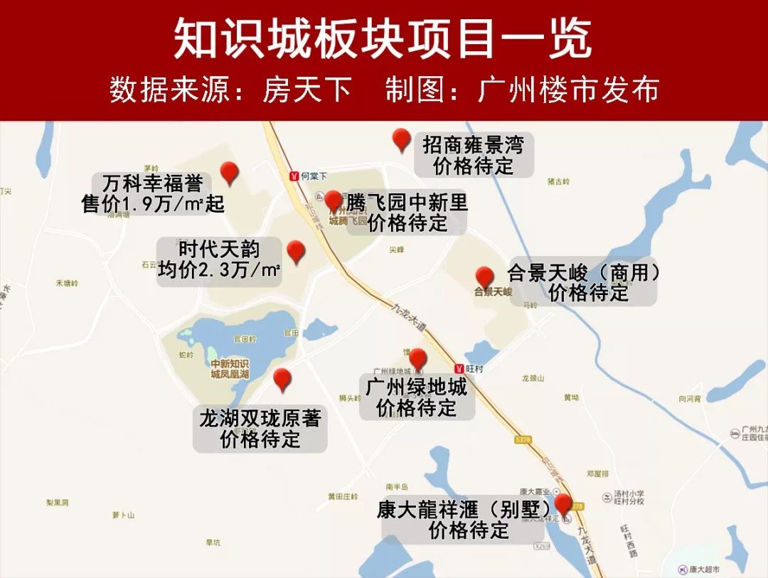 利好不断的知识城汇集不少人气,板块内项目不少,但在售的仅万科幸福誉和时代天韵,其余推新时间均待定。