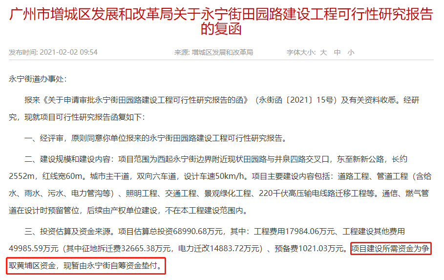 其实为增城出钱修路,是2020年黄埔解决了原属增城永宁街的翟洞村地块长达20年的收储难题。上面黄埔所划拨给增城的钱,就来源黄埔成功收储翟洞村划拨给增城的储备资金。
