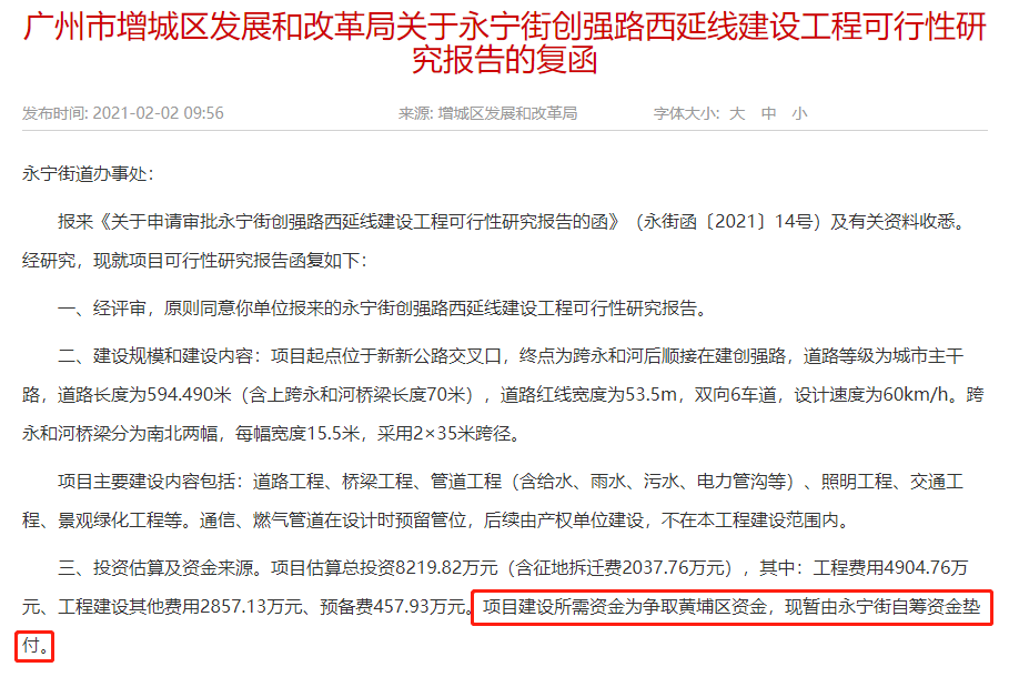 近日房产君在后收到不少回复,其中不少是关于为什么增城区永宁街道多条道路建设都是由黄埔区出资。许多猜测人都是不是增城没钱,或者永宁要归黄埔了……其实,这些都是你们想太多了。