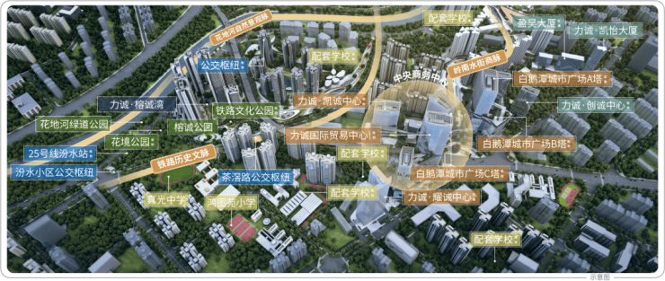 诚汇新都特邀XAA冼剑雄联合建筑设计事务所执行合伙人「冼剑雄」大师、第一太平戴维斯、汇张思、怡境国际等知名设计和顾问单位参与规划设计,整合茶滘自然、人文等元素,按“中央商务中心、花地河景观脉、铁路文脉、岭南水街商脉”的「一心三脉」格局规划,打造一个集总部办公、高端商业、星级酒店、高品质居住为一体的白鹅潭CBD都会大城。